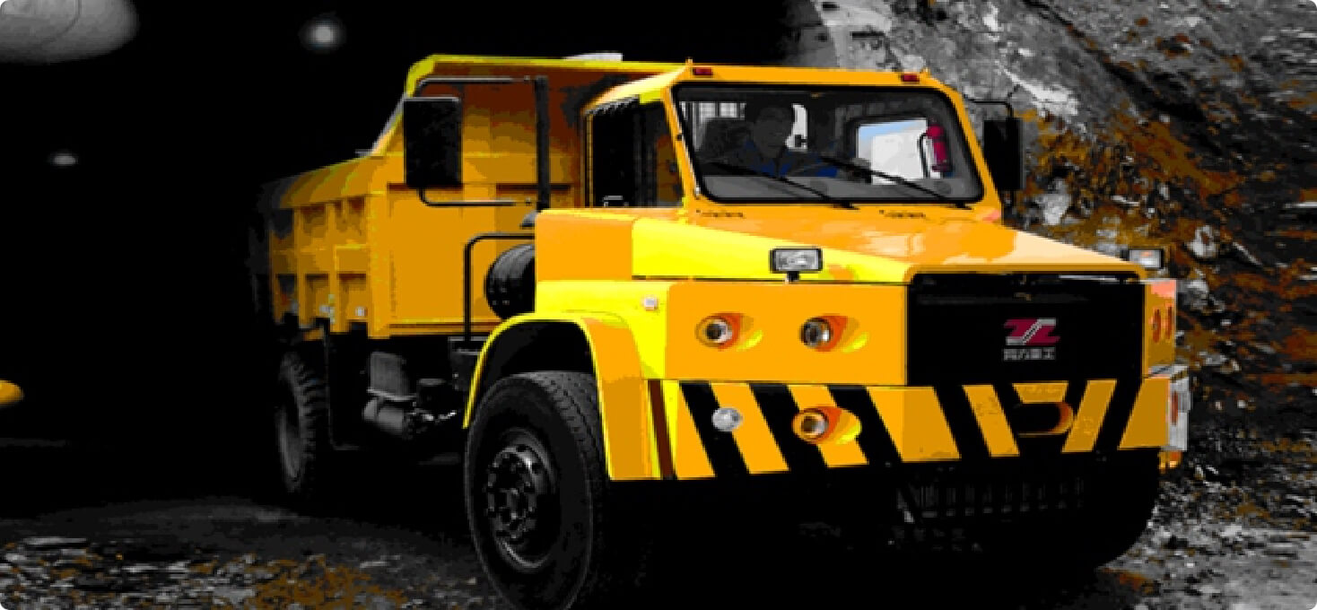 适用于井采矿山斜坡道运输的专用设备,符合国家矿用产品安全标志要求(KA)。