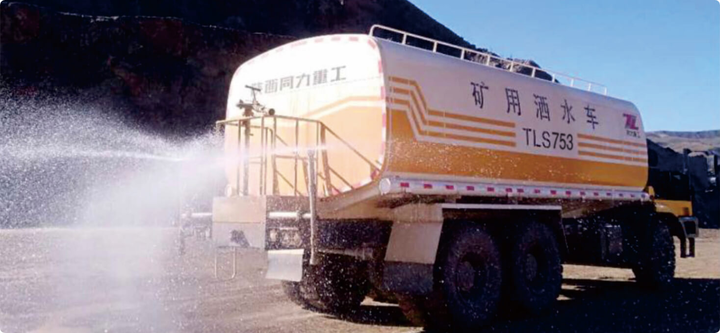可靠性强:采用成熟的同力重工非公路宽体车底盘,经过矿区恶劣环境的考验,工况适应性大大超过公路洒水车,具有更高的安全性、可靠性和出勤率;水罐可满足不同矿区水质要求,适应性强,使用寿命长。